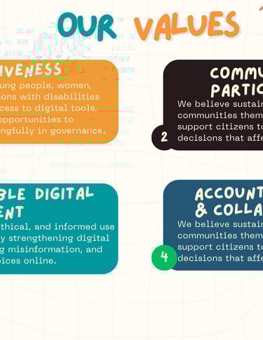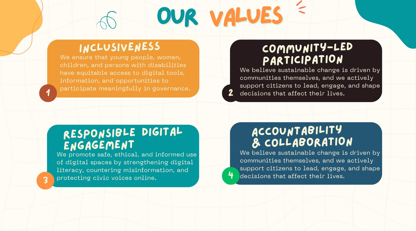 Empower Underserved Communities with Digital Skills and Advocacy, To Drive Inclusive Governance And Sustainable Development, Through Community-Led Digital Literacy Training, Advocacy Initiatives, And Innovative Solutions Tailored To Local Needs.